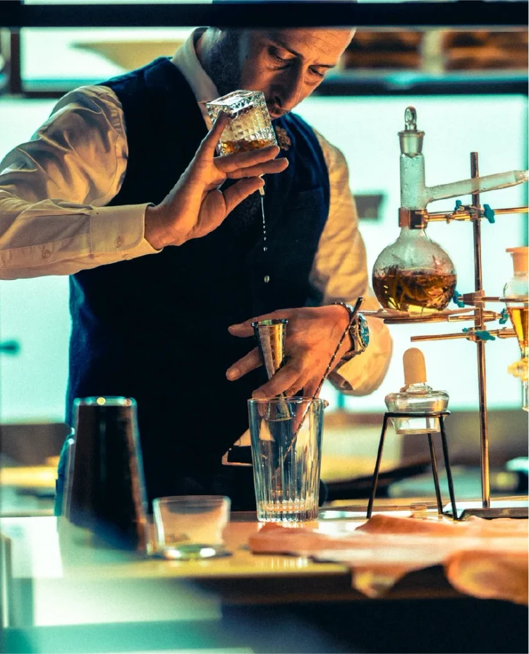 Il suo viaggio comincia nel 1996, quando scopre la passione per un mondo fatto di essenze, contrasti e armonie. Da allora, ogni creazione è per lui un atto di ricerca: un equilibrio tra la conoscenza profonda dei migliori spiriti, la valorizzazione del territorio e la costante spinta alla sperimentazione.