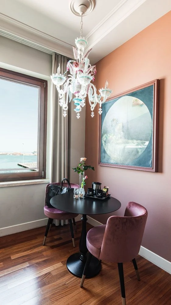 49 stanze, 49 mondi e storie. Tutte diverse una dall’altra. Colori che entrano dentro e che riflettono la luce del Sole, che fa il suo arco in cielo proprio davanti a noi, sopra le onde.