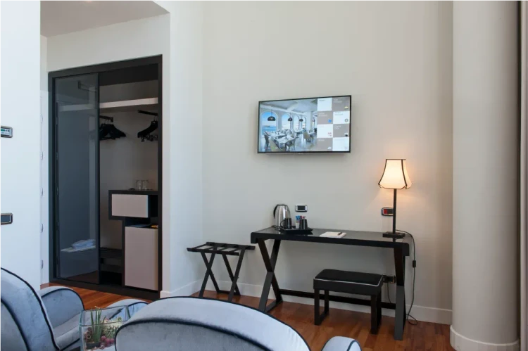 Spazi ampi e luminosi, caratterizzati da un'eleganza discreta, pensati per chi desidera vivere un'esperienza di soggiorno unica, dove comfort e suggestioni si fondono in un'atmosfera su misura.