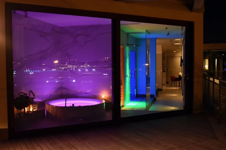 Abbiamo una Suite che è anche una Spa. Sembra uno yacht, sospeso tra il blu del mare e i rossi del cielo, con le albe e i tramonti che fanno capolino dalle onde. Una camera che è un’esperienza. Interamente vetrata. Tra una vasca idromassaggio, una sauna, un bagno turco e la cromoterapia. Senza dimenticare la jacuzzi riscaldata sul terrazzo con vista sul duomo e sul mare. Una coccola da vivere con la persona del cuore, che sia per un'occasione o, perché no, in una giornata normale. Ci pensiamo noi a renderla speciale.