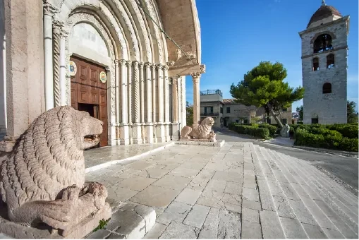 La Cattedrale, comunemente chiamata Duomo di Ancona, è uno dei simboli del capoluogo dorico. La struttura subisce numerose modifiche nel corso del tempo che le conferiscono un aspetto peculiare, con un'architettura complessa; un meltin pot di stili dal romano al gotico. Presenta una cupola, risalente al Medioevo, una tra le più antiche d'Italia, e delle Cripte con le spoglie di alcuni santi, tra cui San Ciriaco, patrono della città. Esternamente la facciata è realizzata in pietra bianca del Conero: presenta un arco a tutto sesto con rilievi ricchi di simbologie e 4 colonne, poggiate sulle iconiche statue dei Leoni in marmo rosa.
